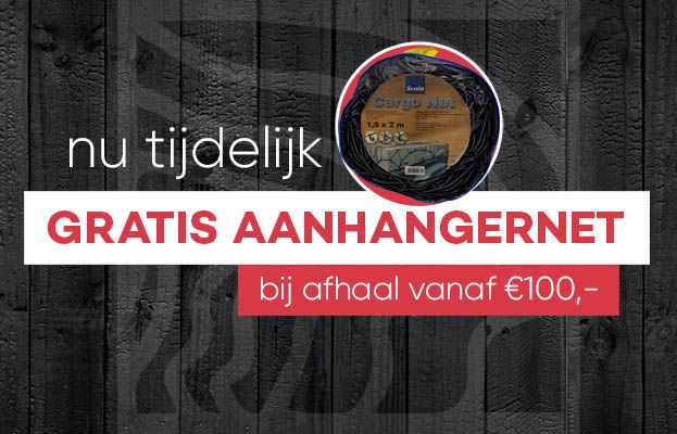 - Bestel voor minimaal €100,- en ontvang GRATIS een aanhangernet van 150x200cm bij afhalen van uw bestelling.
