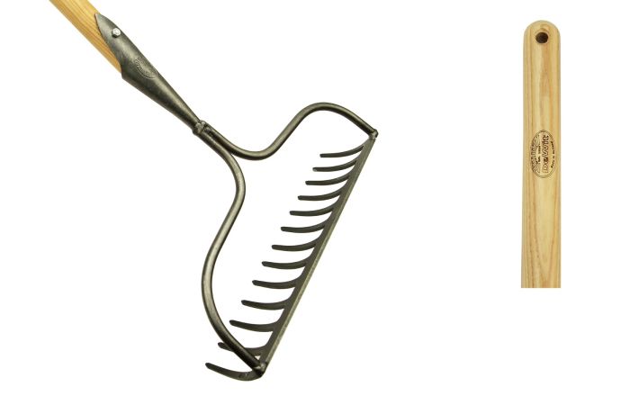 De beugelhark van De Wit is ontworpen voor kracht, precisie en duurzaamheid. De sterke stalen tanden maken het gemakkelijk om zware grond of grind te verdelen, terwijl de essenhouten steel zorgt voor een prettige werkhouding en uitstekende controle. Ideaal voor zowel hoveniers als enthousiaste tuinliefhebbers die professioneel gereedschap waarderen.