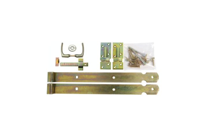 De Tuindeur Beslagset Gold Line – Geel Verzinkt is speciaal samengesteld voor het stevig en netjes afhangen van houten tuindeuren en tuinpoorten. Deze complete set biedt alles wat je nodig hebt voor een betrouwbare montage en is dankzij de geel verzinkte afwerking goed beschermd tegen roest en weersinvloeden.