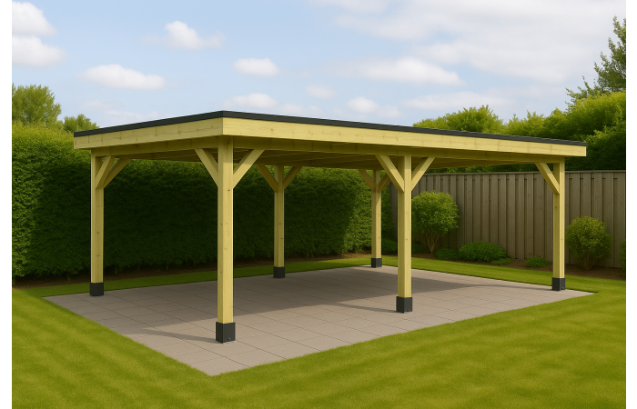 Onze HBM Douglas Overkapping bouwpakketten bestaan niet alleen uit een Douglas houtskelet, maar bestel je eventueel inclusief fundering en dakbedekking naar keuze.