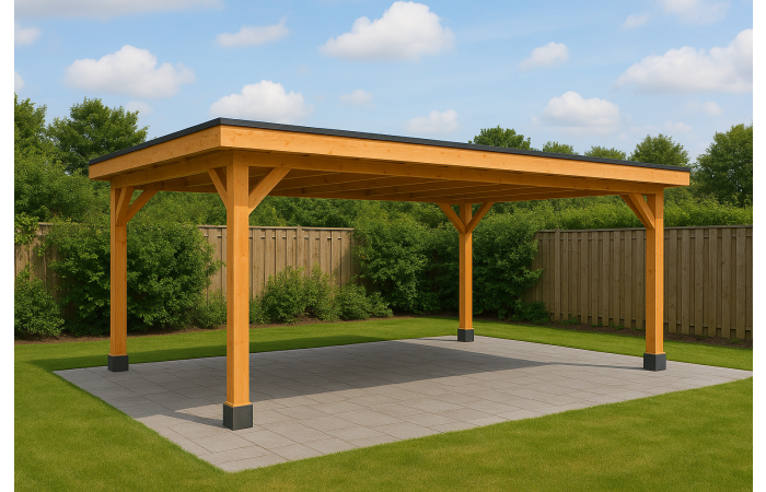 Onze HBM Douglas Overkapping bouwpakketten bestaan uit een stevig houtskelet en zijn naar wens uit te breiden met fundering en dakbedekking.