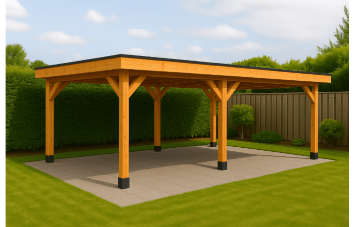 Onze HBM Douglas Overkapping bouwpakketten bestaan uit een robuust houtskelet en zijn uit te breiden met fundering en dakbedekking naar wens.