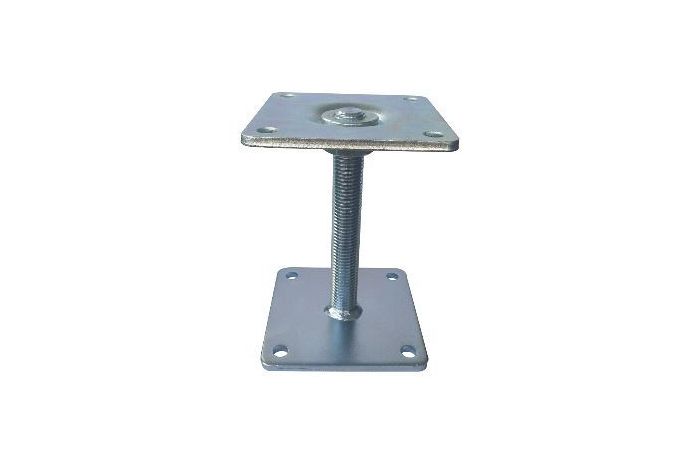 Als u geen gebruik maakt van betonpoeren, omdat u bijvoorbeeld al een bestaande vloer, fundatie of vlonder heeft kunt u deze verstelbare paalhouders op plaat gebruiken om eenvoudig staanders te bevestigingen en in hoogte te verstellen.