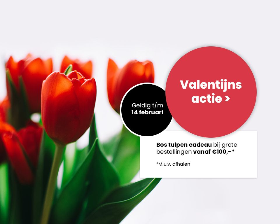 Omdat jullie ons erg dierbaar zijn hebben we weer een mooie valentijnsactie dit jaar! We sturen onze bezorgers binnenkort op pad met bosjes… tulpen! Plaats jij tussen vandaag en 15 februari een grote bestelling in onze webshop, van minimaal €100,-? Dan krijg je bij de levering een bosje tulpen cadeau!