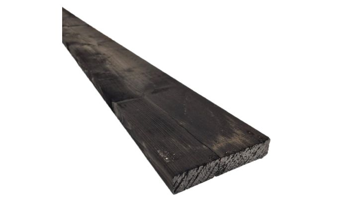 Vuren plank gedroogd en geschaafd met ronde kant zwart geïmpregneerd 28x150mm 300cm